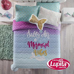 Las colas de sirena, una tendencia única con colores brillantes hará que tu habitación se llene de alegría con la especialidad dorada en su edredón, fundas y cojín decorativo; además de ser un diseño innovador.