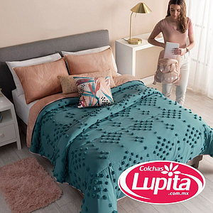 Haz de tu cama el punto focal de tu habitación con este increíble edredón con pompones que le dará un toque fresco y femenino por su combinación de colores turquesa y rosa en conjunto con sus cojines de inspiración tropical.