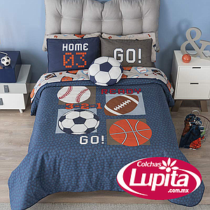 Todo pequeño deportista soñará con ganar el juego con el edredón Sports, su estampado incluye sus deportes favoritos en un colorido clásico renovado, la inspiración deportiva en su recámara lo motivará a seguir en movimiento.