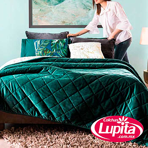 El color esmeralda es perfecto para crear ambientes relajados y acogedores, apuesta por ésta tendencia aplicada en una tela especial con capitonado de hojas. Edredón MAT vista. Calidad premium por su textura velvet súper suave.
