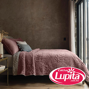 Dale un toque de versatilidad y lujo con nuestro nuevo edredón Mulberry, súper suave y de pelo corto con textura formando hojas tropicales y con nuestro nuevo color en tendencia woodrose. Edredón con Calidad premium por su textura bordada en pelo corto súper suave. Complementa con fundas y cojines.